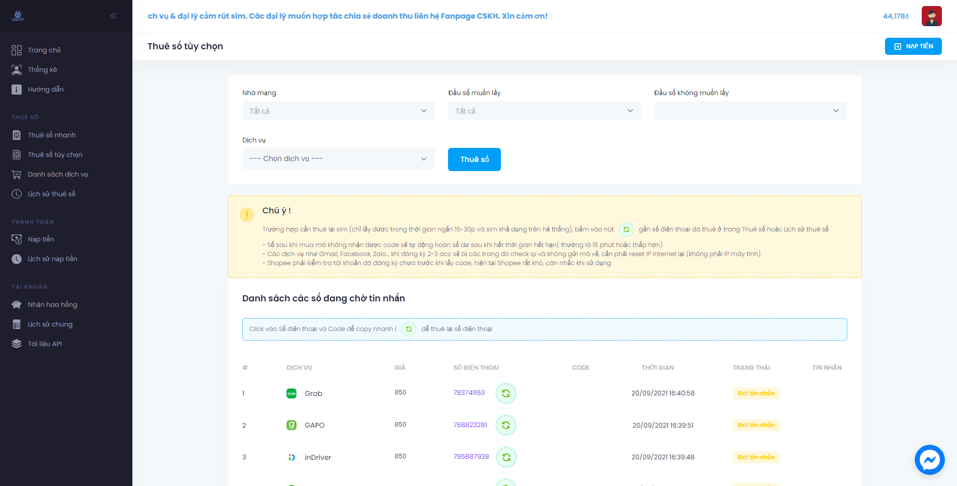 ViOTP - Sim Thuê Không Giới Hạn