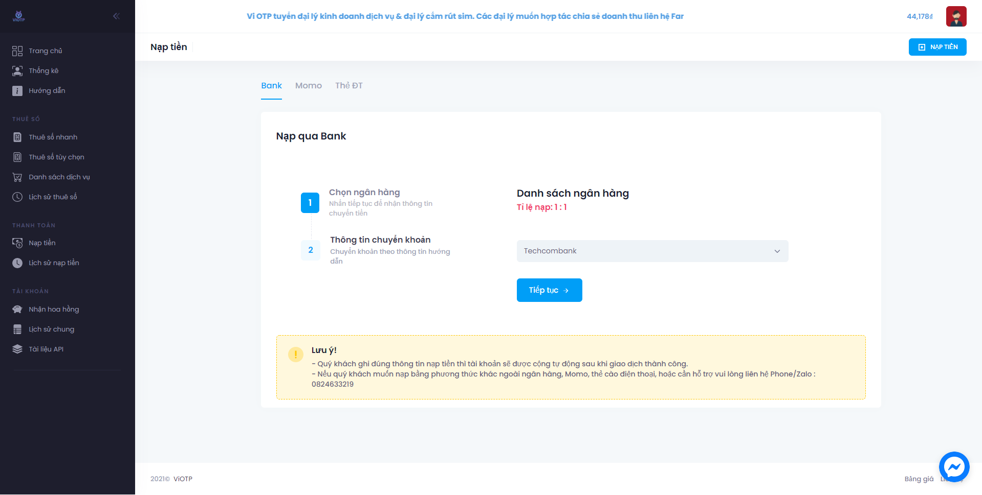 tài khoản của ViOTP